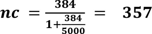 Design effect (1.5) will be used Since we use a three-stage sampling technique (hierarchies), a 10% response rate will be considered. Now since the calculated sample size is < 10% of the Population, the Correction formula for a finite population is needed to be applied. Correction Formula for final sample size =